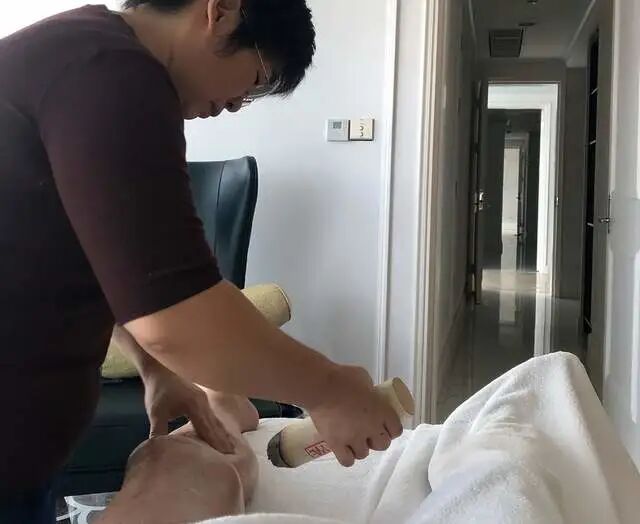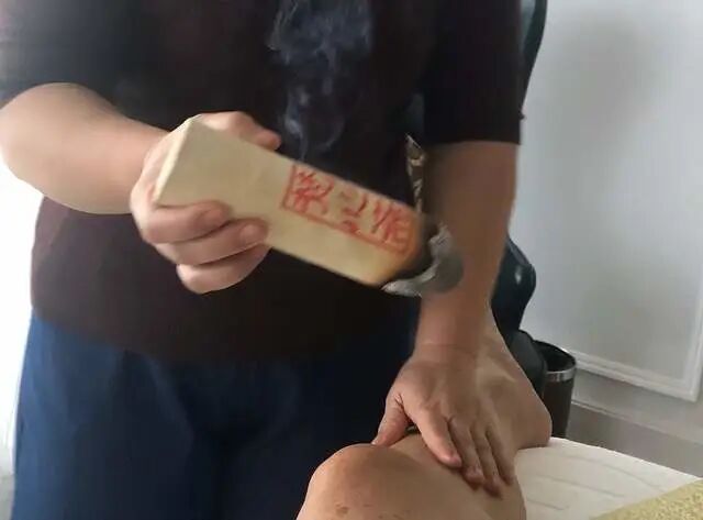 虽然谭咏麟没有描述出艾灸时的感觉,但是从他做艾灸的几张照片,还是可以找到一些蛛丝马迹,比如艾灸师用力按压他的腿部,然后用艾灸近距离烟熏。