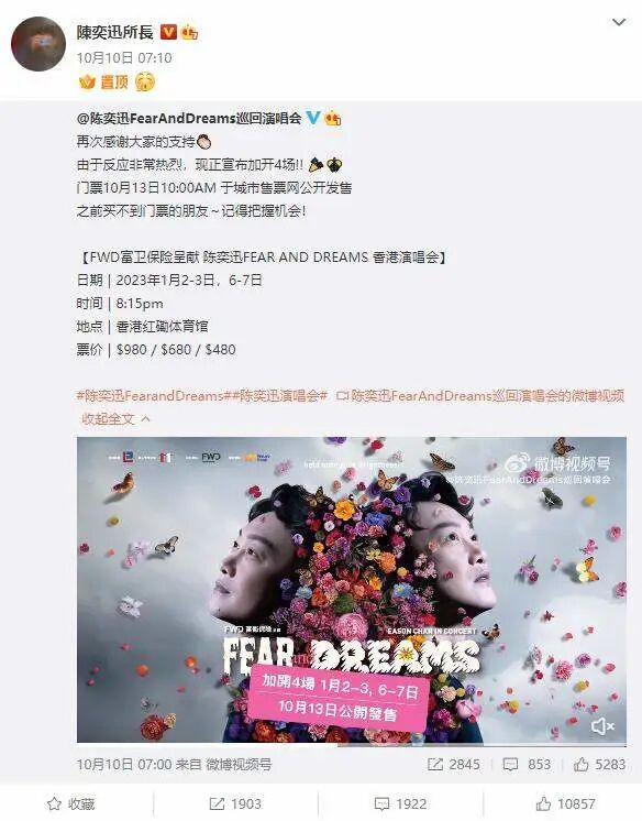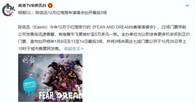 可能是为了顾及到没有买到票的歌迷,也有可能是为了气那些抵制他的人,陈奕迅于是便乘胜追击宣布加开4场,结果依旧是被秒空,可谓是一票难求。