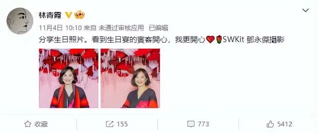 虽然林青霞只晒出了自己的照片,但前来给他庆生的朋友应该不少,因为生日蛋糕都准备两份,特意发文感谢朋友送来的礼物。