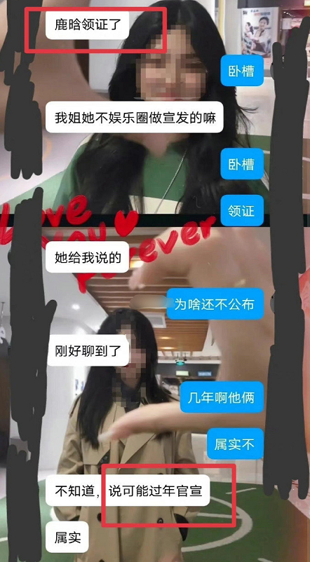 而从网民的聊天截图来看,纯粹就是文字对白,没有任何照片进行佐证。只是爆料人在跟朋友聊天的时候,表示自己的姐姐在娱乐圈做宣发工作,也就能够拿到圈内的第一手消息,同时还强调领证结婚是属实的,但不能百分之百确定会在过年期间一起官宣。