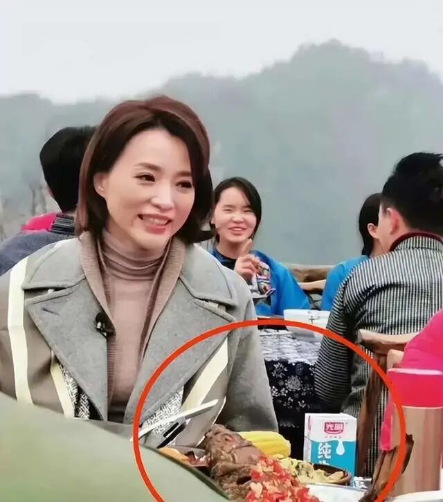 不知道是因为正在录节目,还是饭菜不合胃口的原因,摆在董卿面前的一大桌美食,似乎提不起任何兴趣,有可能连筷子都没有动过。
