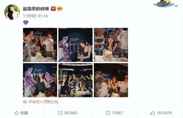 至于是谁精心布置的生日会,那还真不太清楚了,但能够确定的是,这个策划者对赵露思的喜好是很清楚的,因为从生日会的主题颜色就可以看出,主要以紫色和黑色居多,而这也是赵露思最喜欢的几种颜色。