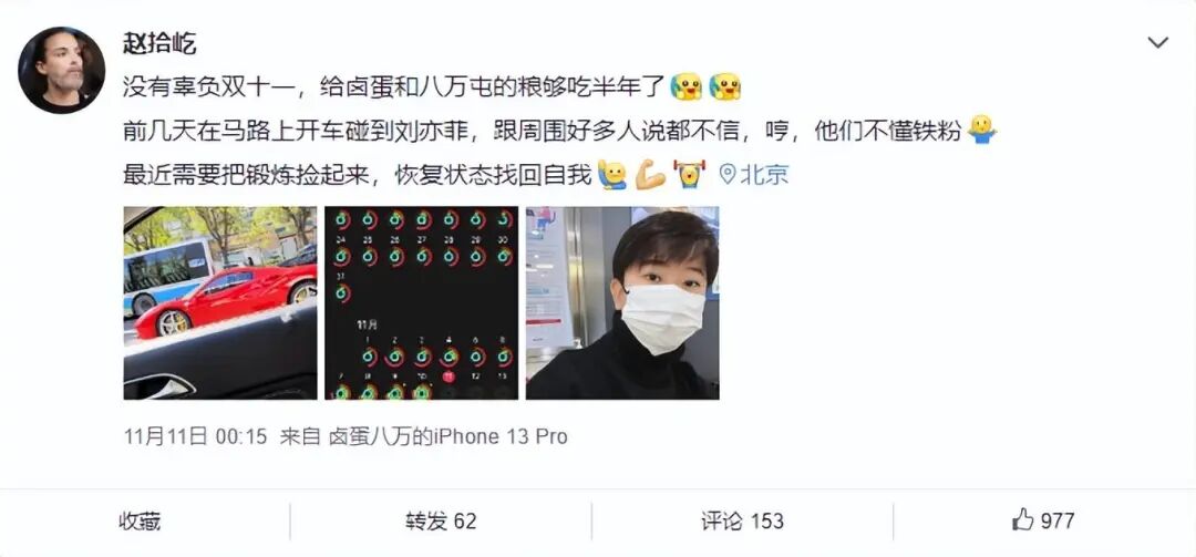 日前,一位名叫“赵拾屹”的网友在微博上爆料称,前几天在路上开车的时候,偶遇到了开着红色跑车的刘亦菲,并且摇下了副驾的窗户拍了一张照片,以此来证明自己没有撒谎,照片发到网上后引起不小的热议。