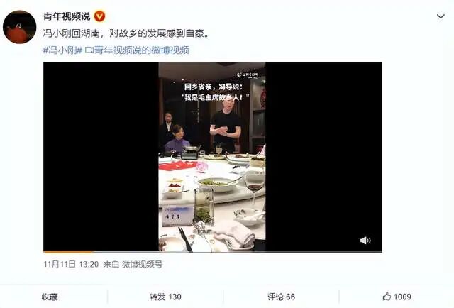日前,网络大V“青年视频说”通过微博爆料称,知名导演冯小刚回到了祖籍地湖南湘潭,在老家受到了热烈欢迎,盛情难却之下携妻子徐帆参加了一个高档饭局,说了很多对于家乡发展的看法,感到特别的自豪和高兴。