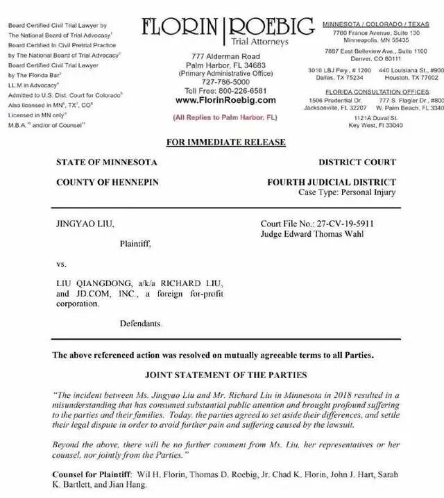 但是涉案女子并没有打算放过刘强东,这些年一直在通过法律途径想要讨回公道,直到上个月月初的时候,双方律师团队突然发表联合声明,表示已经达成和解,并强调一切都是误会。