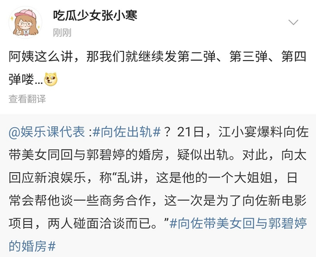 显而易见,狗仔是铁了心要将向佐实锤到底,而且根本就没有把向太陈岚说的话当回事。