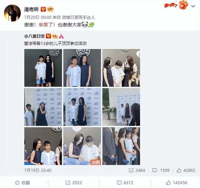 包括像今年七月的时候,他转发过董洁带孩子参加活动的微博,还说了一番感谢的话。