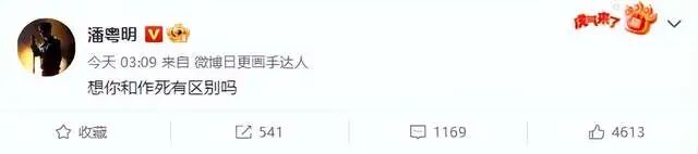 11月17日凌晨3点时分,知名男演员潘粤明突然通过微博发文示爱,言简意赅地写道“想你和作死有区别吗”,成功引起了很多影迷们的关注,纷纷猜测其很有可能有喜欢的人,才会如此露骨明了地去表白。
