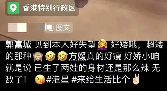 然而偷拍者压根就不吃郭富城这一套,不仅把视频发到了网上,还对他是一顿冷嘲热讽,说他个子超矮,却狂夸方媛身材好,生了孩子都是辣妈,意思就很明显了,说郭富城根本就配不上方媛,典型的老牛吃嫩草。