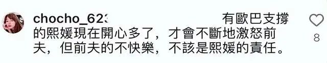 同时,她还在评论区里头一针见血指出汪小菲发飙的原因,就是因为大S嫁给具俊晔之后过得很开心,这才会不断激怒汪小菲,但是这个责任不该是大S的,要怪就只能怪汪小菲不懂珍惜,只有当失去后才会追悔莫及。