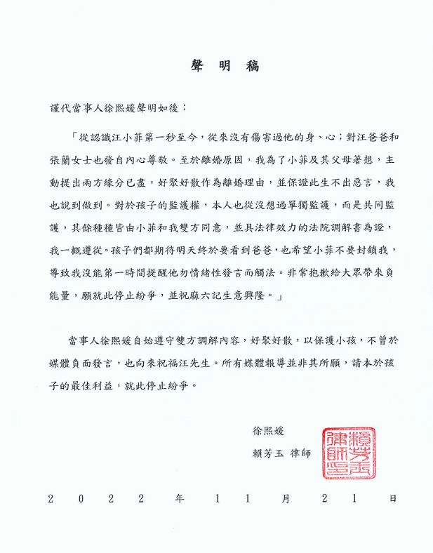与此同时,大S经纪人还表示当时双方离婚的时候,是在没有喝酒的情况下,同时也是在律师见证下签下的离婚协议,无论条件还是金额都是亲自签名用印的,不存在强迫一说。
