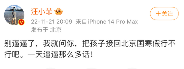 可声明发布出来之后,结果并没有如大S所料想的那样好转,反倒又再次把汪小菲给惹毛了,直接在微博上喊话大S别啰啰嗦嗦,就问她能不能把孩子接回北京过个寒假。