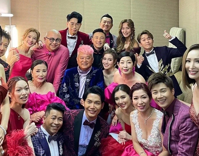 虽说陈百祥不是大明星,但是他的年龄和资质是摆在那里的,大部分年轻演员对他是非常尊敬的,就好比台庆活动结束后,明星嘉宾都齐聚后台合影留恋,陈百祥被拥簇在人群中央,稳居C位十分抢镜。
