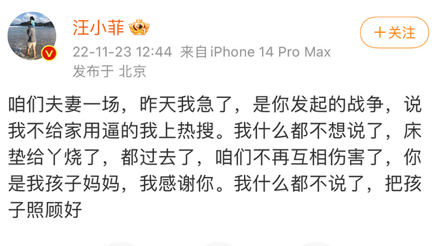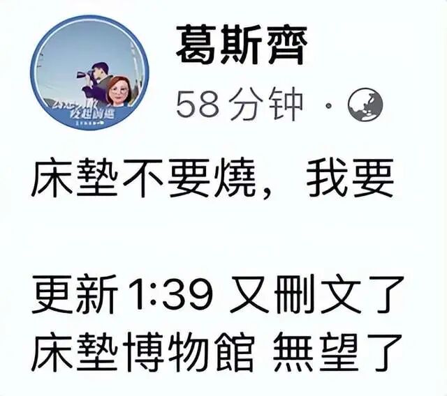 可让人无法理解的是,汪小菲发博后又迅速删除掉了,疑似妥协但又没有完全妥协的样子,但也有人猜测他是舍不得烧掉床垫,怕又闹出言行不一的笑话出来,所以发了又删,态度不是很清楚。