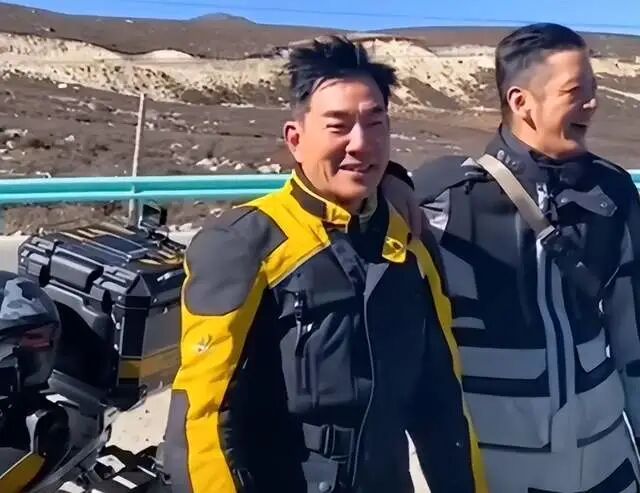 而就在不久前,有人在路边露营的时候,偶遇到了骑着重型摩托车的任贤齐,只见他当时穿着一套厚实笨重的骑行装,戴着白色头盔,跟随车队一路向西,速度开的不是很快,但却非常的酷帅。