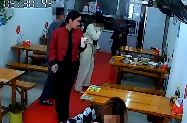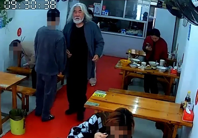从监控视频画面中可以清楚地看到,张纪中穿了一件蓝色外套,披散着招牌式的白色长发,吃完后正准备离开。而他的妻子杜星霖还坐在餐桌前,似乎在用手机进行扫码付款,不难想象一家的财权全都掌握到了杜星霖的手上。