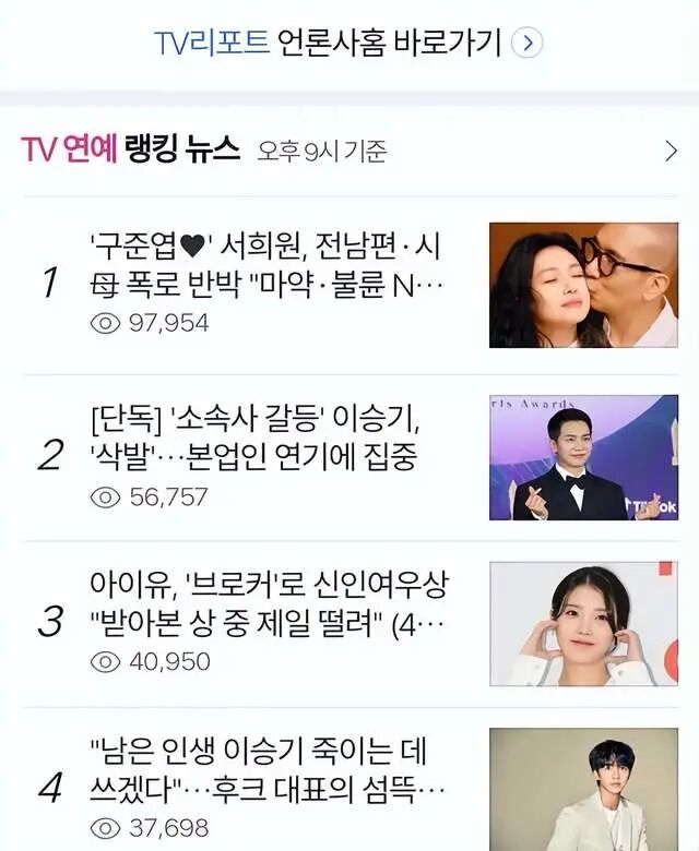 然而有趣的是,因为汪小菲痛骂具俊晔是窝囊废,不仅让他在中国成了头版人物,同时也让他在韩国成了头版人物。