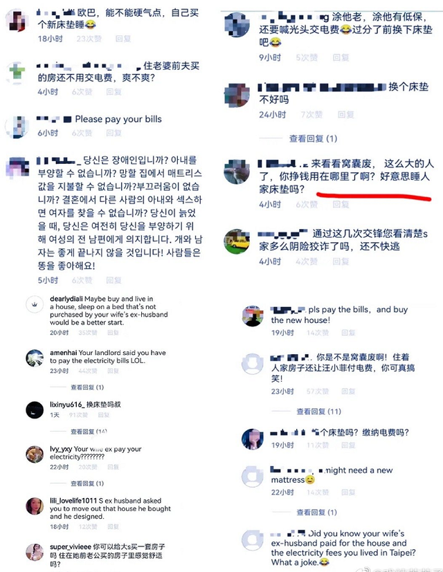 评论区基本上都是质疑和谩骂,说具俊晔太抠门小气了,连生活费都得让老婆的前夫去支付。而他作为大S的现任丈夫,既买不起房,也舍不得交电费,相当于就是拎包入住,搁谁身上都是瞧不起的。