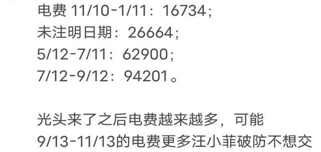 直到后来有人对照汪小菲曝光出的支付明细表,意外发现大S家平均一个月的电费就要2万多块钱,惊呆了很多人。这对于普通家庭而言,大S家一个月的电费可能要抵一年,乃至好几年。