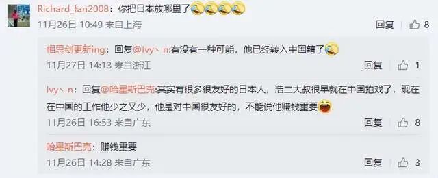 对此,很多影迷看到后纷纷为他发布的这个视频点赞,但也有个别歌迷担心他又会闯祸,因为他这样做压根就没有把自己的祖国日本放在眼里,站在他的角度来讲的话,算得上是崇洋媚外,想要讨好中国。