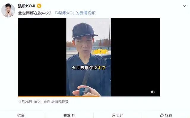 日前,日本男演员矢野浩二通过微博分享了一段视频,以采访的方式表明了自己对中国的热爱,面对工作人员提问会讲多少种语言的时候,他卖了一个关子后便将答案引到了全世界都在说中文,成功引起了很多人的关注。