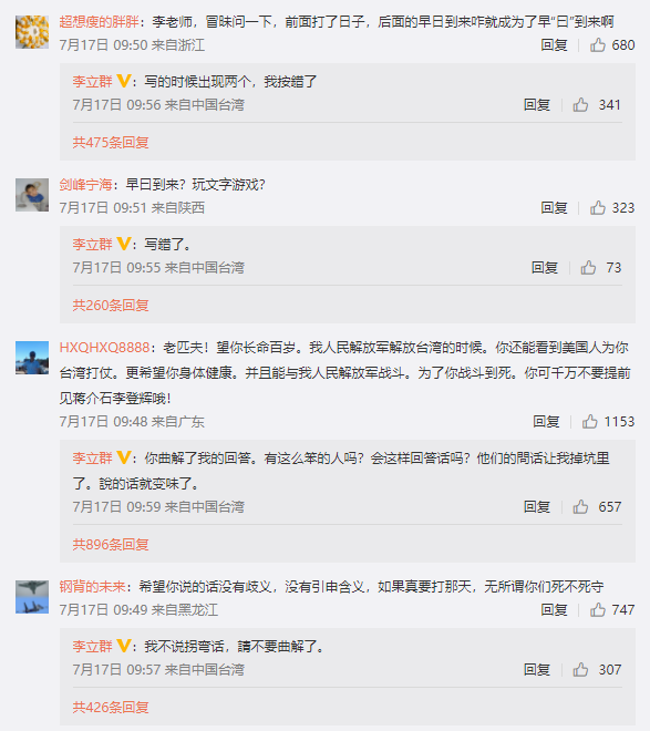可是李立群简短的回应,似乎并没有消除疑虑,解除误会,反倒又引起了新的一轮攻击,比如有人说他故意玩文字游戏,而李立群却解释称是打错字了,可是没有多少人相信他的话,该骂的还是在骂。