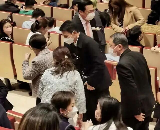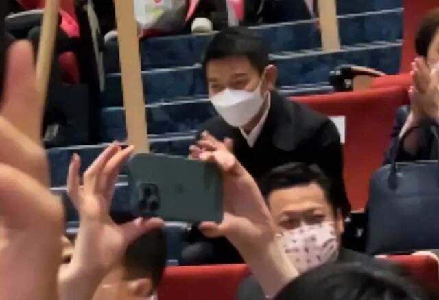 从被曝光的照片中可以清楚地看到,刘德华当时穿了一套黑色西装,戴着一个白色口罩,坐在观众席上认真观看着台上女儿的演出,状态相当的不错,脸上露出了幸福的笑容。