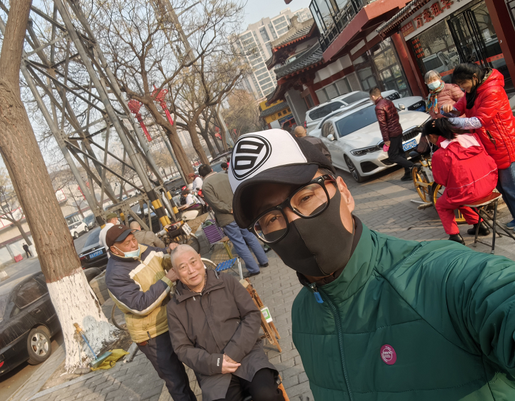 值得关注的是,他身后有很多老人和孩子正在大街上剪头发,而理发师傅也都很认真,用着简易的理发工具,帮客人剪出满意的发型,似乎并没有认出这位大明星来。