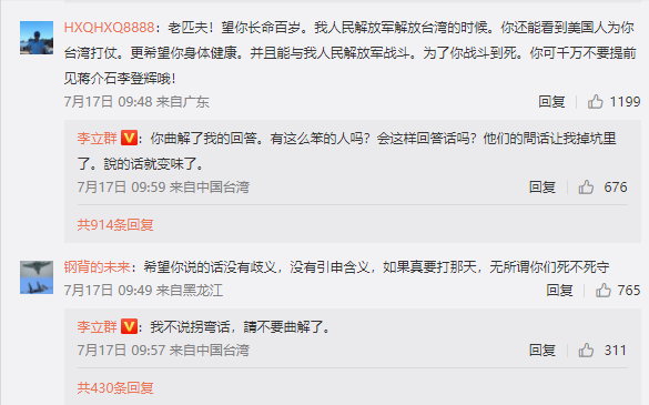 可对于台媒的采访内容,李立群却只字未提,不禁让人怀疑有避重就轻的嫌疑,可网友们并不太满意他的解释,毫不留情面骂他是个老匹夫,但愿他能够兑现承诺战斗到死。