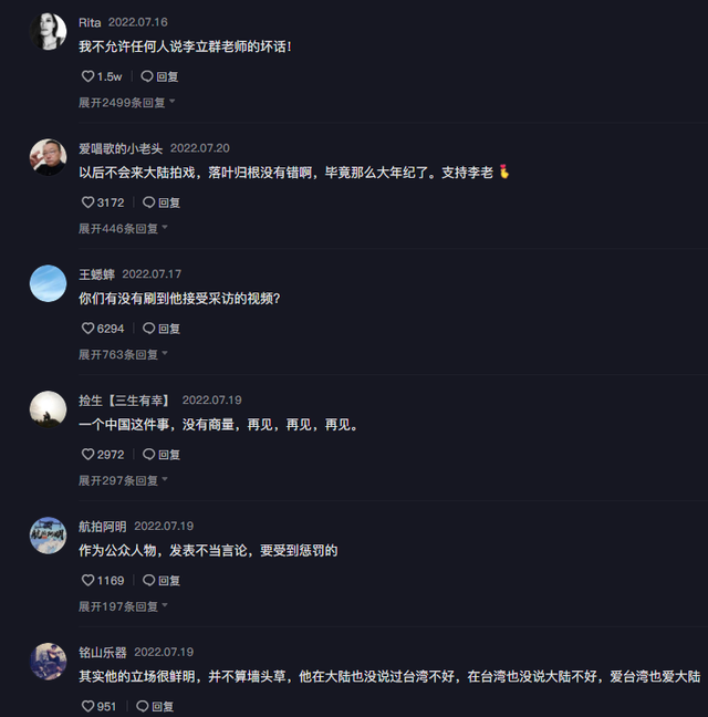 可没想到采访节目对外播出之后,在全网引起了轩然大波,很多网友群起而攻之,纷纷将矛头对准李立群,说他立场有问题,而且还是两面三刀的人,在内地是一个模范艺人,可回到台湾后又变成了另外一副模样。
