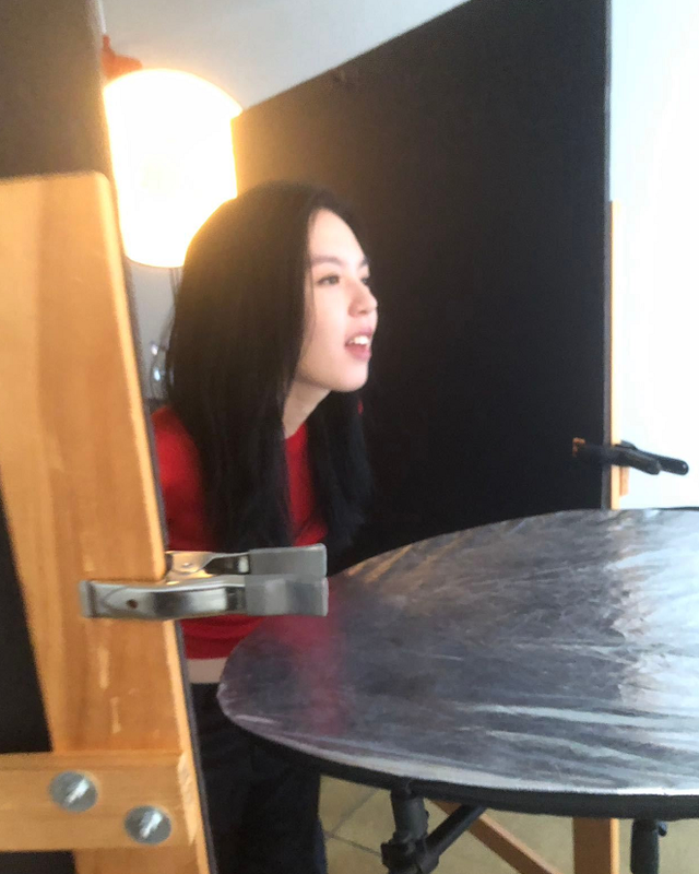 从照片中可以非常清楚地看到,法图麦站在打着聚光的摄影棚里头,很认真地在听从摄影师的指示,探着头伸长脖子,露出甜美的笑容,状态看上去相当不错。