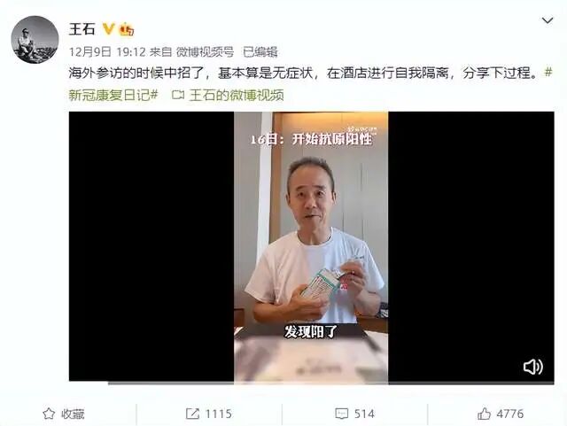 日前,知名企业家王石通过微博分享了一段在酒店做抗原测试的视频,并自曝在海外参访的时候中招了,现在已经平安回到国内,为了不连累到家人,选择到酒店进行自我隔离。然而不幸中的万幸,他没有出任何不适症状,后来经过大概一周时间的检测,已经从阳性转为阴性。