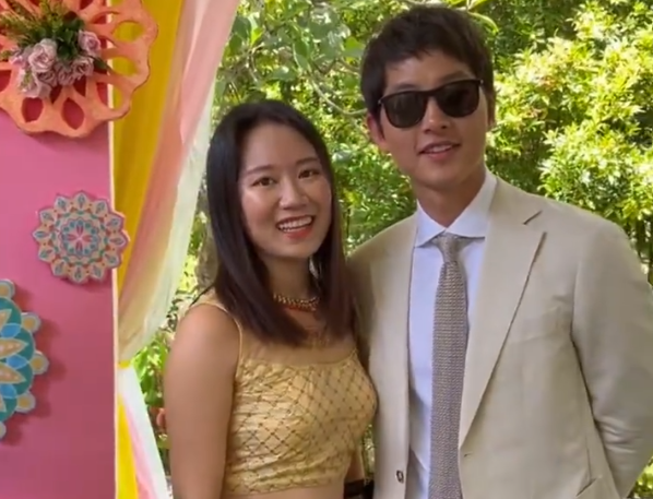 至于宋仲基到底是新郎的朋友,还是新娘的朋友,暂时还是个未知数,但是从婚礼开始时站位情况来看的话,应该跟新郎或是新娘的关系是比较不错的,要不然也不会在百忙之中抽空从韩国飞到巴厘岛来参加婚礼。