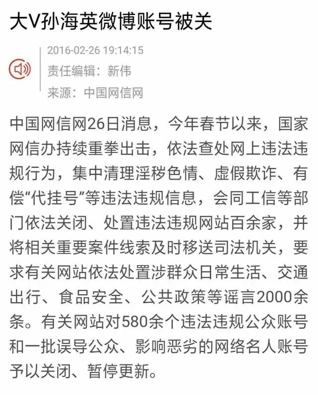 正因为改不了口无遮拦的坏毛病,六年前孙海英的微博账号就被强制关停,用现在的话来讲就是炸号,可想而知他是有多么的招人厌,最终只能说是自食其果,怨不得别人。