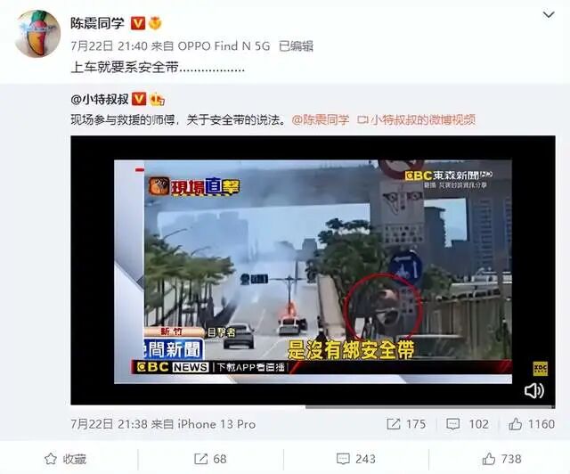 对此,陈震是既委屈又无奈,但觉得还是很有必要站出来好好解释一下,没有系安全带的后果是有多么严重的,以此来论证自己此前的猜测是在合理的范畴。