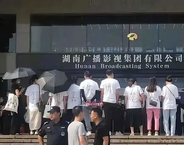 而在去年9月份的时候,芒果台大门口突然出现了一大批穿着白衣的人聚众闹事,全都是来找李维嘉麻烦的,甚至有的在衣服上写了“失德艺人”的大字,说是某奶茶品牌的代理商,要找代言人李维嘉讨个公道。