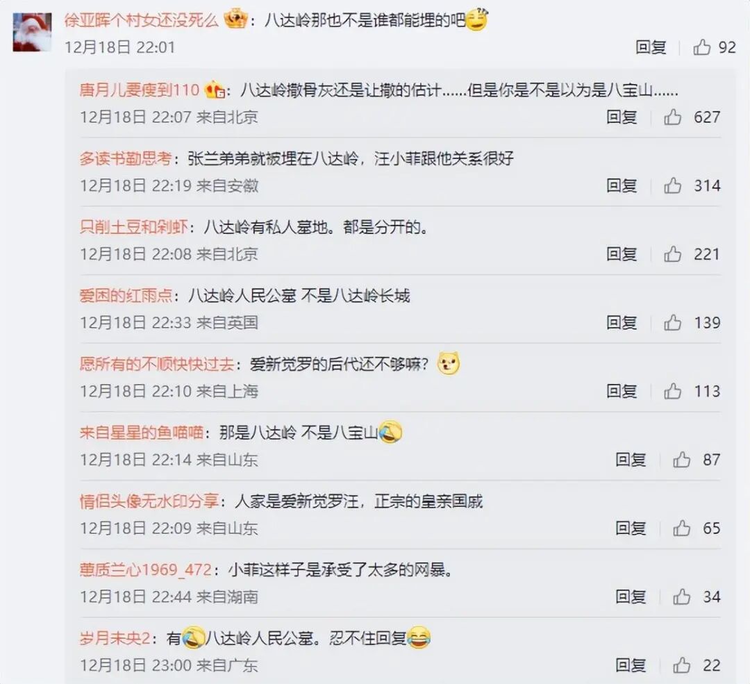 据不少网民透露称,汪小菲的舅舅就埋在八达岭,那边有很多私人墓地,家族墓地也是比较多的,一般的人恐怕都很难进去,可以说埋在八达岭的人非富即贵。