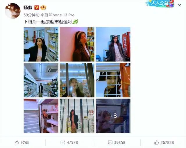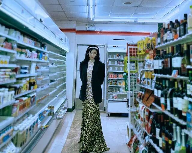 值得一提的是,杨紫所处的超市不是很大,但是商品摆放的整整齐齐,也没有见其他顾客到店购物,这也就给杨紫提供了很好的拍照环境,所以在店内她是各种凹造型,想要展现出自己婀娜多姿的一面。