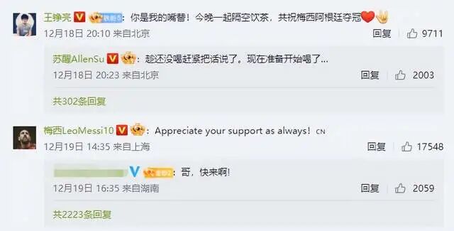 对此,有不少球迷表示梅西根本就没有用过微博,都是有专门的人帮他打理运营,毕竟他在中国是有很大市场价值的,好几个大代言在身,尤其是这次夺得世界杯冠军后,商业价值将会得到进一步提升,到时候很有可能会来中国参加一些商业活动。