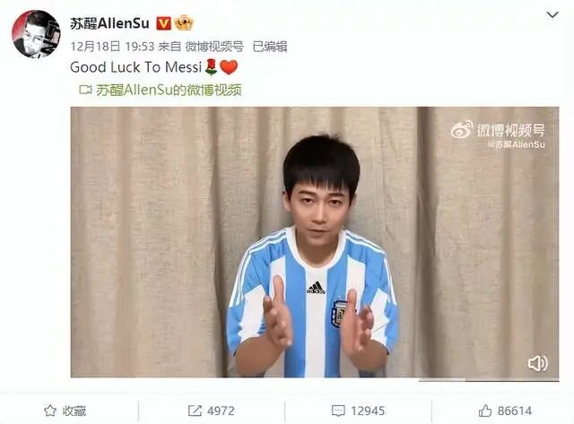 日前,知名歌手苏醒在微博上发视频祝贺自己的偶像梅西夺冠,没想到却得到了梅西的回复,用英文感谢苏醒一如既往的支持,在全网引起了不小的热议。其中,梅西微博IP地址显示在上海,被人质疑不是本人回复,称苏醒不算是真正意义上的追星成功。
