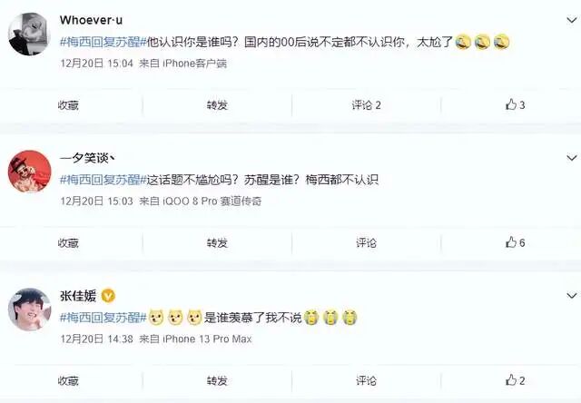 别说见一面了,哪怕得到他的回复也是比登天还难的一件事,可是歌手苏醒就做到了,在微博上得到了梅西的回复,火速上了微博热搜,让无数球迷是羡慕不已,其中就包含不少喜欢梅西的顶流明星在内。