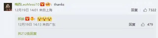 当然,得到梅西回复的并非只有苏醒一人,像国际著名钢琴家郎朗也得到了梅西的回复,而郎朗看到后立马用了三个兴奋的表情包予以回应,时间相差也就十来分钟。