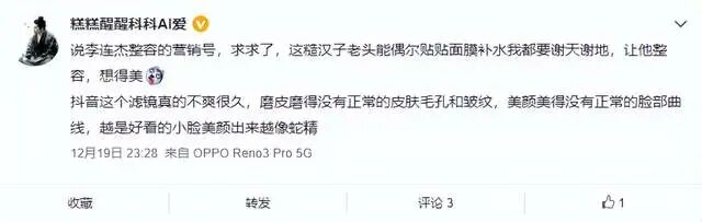 最重要的是,影迷都知道李连杰是个典型的“糙汉子”,平日里让他去贴面膜补水都要谢天谢地,更别提整容了,只能说现在的美颜滤镜功能实在太强大,活生生把他真实面容给扭曲变样了。