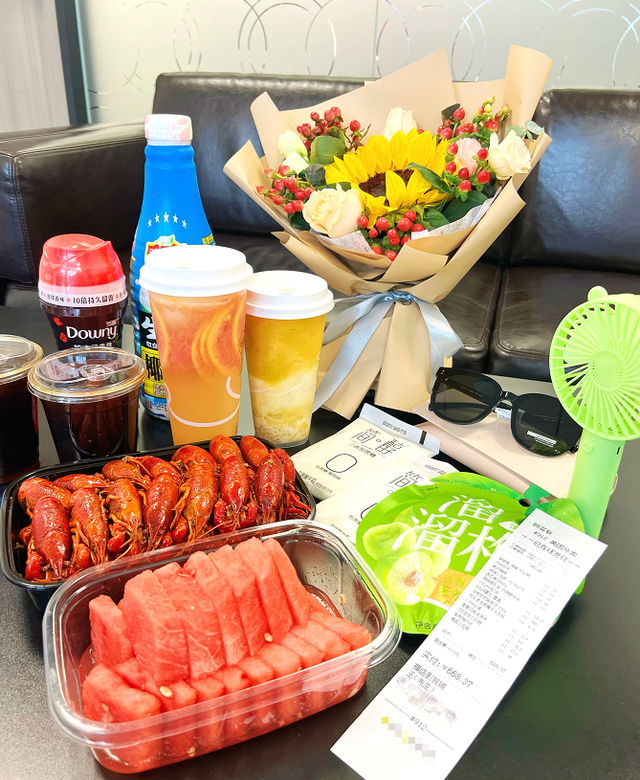 从照片来看的话,杨幂点的这单外卖确实够丰富的,有饮料、咖啡、小龙虾、牛奶、零食、墨镜和鲜花,算下来的话,六百多块钱应该是有的,至少墨镜和鲜花就占了大头,加起来三、四百块钱肯定是有的。