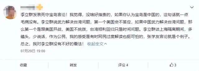 至于李立群究竟是怎么想的,又持何种立场,暂且不予以置评,但要是客观去看待他在采访中发表的言论,还是存在一定歧义的,因为宝岛是李立群的故乡,那么他死守宝岛就是在死守自己的故乡,完全是合情合理的。