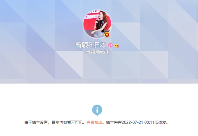 7月14日,有网友意外发现知名记者曾颖偷偷关闭了微博,目前账号上的内容均不能查看,疑似不满微博遭到禁言,采取此种行动来表达心中的不满。此前因在新闻直播连线过程中,当着众多观众的面为遭到枪击身亡的安倍晋三哭泣,遭到了全网的炮轰和谴责。