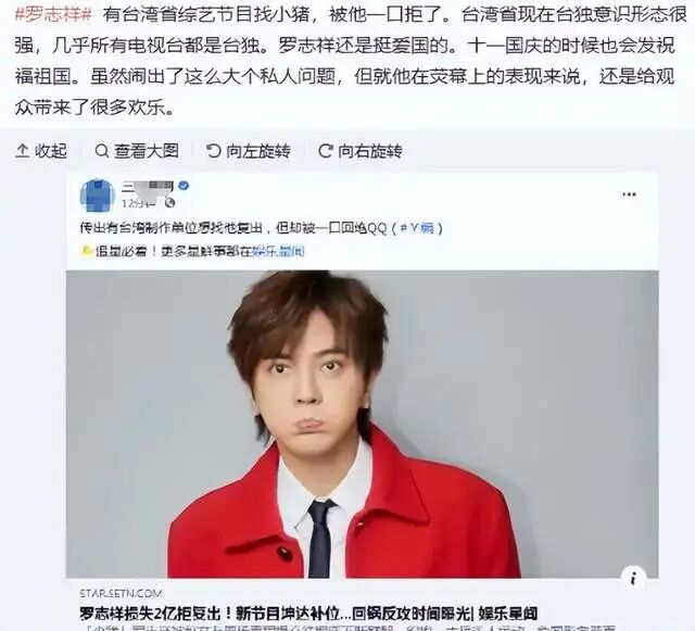 众所周知,罗志祥因为跟前女友周扬青分手后,被女方爆出私生活混乱,形象和事业遭到了毁灭性的打击,只好离开内地返回宝岛发展,不复往日的辉煌和待见。即便如此,他始终坚守底线,哪怕没有工作,挣不到钱了,也决不同流合污,做卖国求荣的事。