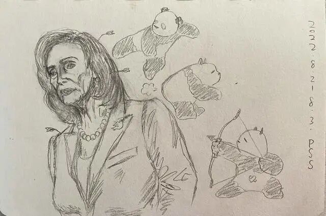 8月3日,知名男演员潘粤明通过微博晒出了一张手绘漫画图,并建立话题邀请影迷跟他一起画画。而他画的正是当前全网最热门的话题人物,美国的第三号人物佩洛西,同时还画了三只国宝熊猫一起胖揍佩洛西。