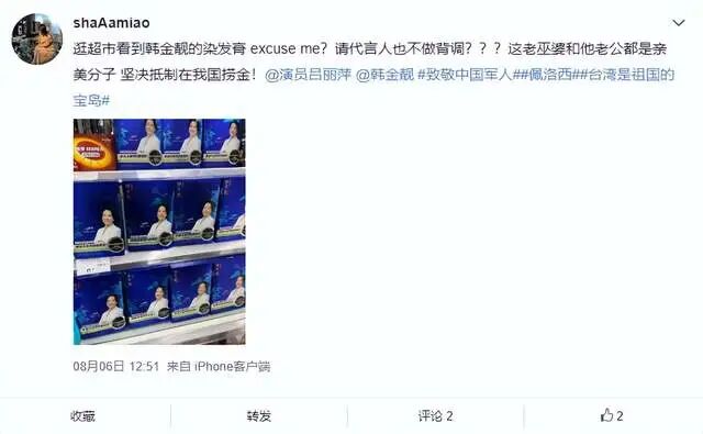 日前,一位名叫“shaAamiao”的网友在微博上爆料称,影后吕丽萍未受到不当言论风波的影响,代言产品仍在超市正常销售,而且摆放的位置十分显眼。据悉,上个月她因哭悼日本前首相安倍晋三,不仅遭到了全网的炮轰,同时微博账号也遭到了禁言。
