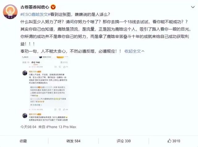 可让鹿哈万万没想到的是,他发文回应不仅没有缓解舆论压力,反倒再次招惹来了铺天盖地的质疑和谩骂,很多人在其评论区里头留言酸他,讽刺他,说他就是一个山寨货,利用超人气偶像鹿晗的名气,打擦边球各种无下限恶搞蹭热度。